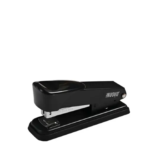 Corchetera negra metálica de 13 cm, con capacidad para hasta 20 hojas. Resistente y cómoda de usar, ideal para uso escolar y de oficina, con diseño compacto y funcionamiento suave.