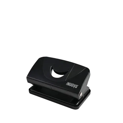 Perforadora metálica robusta en color negro, diseñada para taladrar hasta 20 hojas a la vez. Perfecta para uso de oficina, con construcción durable y manejo cómodo que facilita la organización eficiente de documentos.